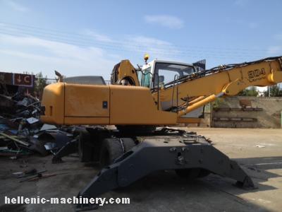 Other Info: PELLE SUR PNEU LIEBHERR A904 INDUSTRIE 2005 Le châssis lourd et largement dimensionné est généralement doté de 4 stabilisateurs permettant d'atteindre des capacités de charges constamment élevées dans la zone de 360°. L'équipement de travail spécialement conçu pour la manutention industrielle se compose d'une flèche monobloc industrie, d'un balancier industrie et de l'outil de travail. Ce dernier peut être un grappin multiprise, une pince à bois, un grappin pour matériaux légers ou un électro-aimant. 4 Patins - Cabine Hydraulique WHEELED EXCAVATOR LIEBHERR A904 INDUSTRIE 2005 4 Patins - Cabine Hydraulique